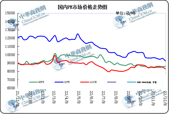 后市預預測:本周原料原油價格大幅下跌,乙烯價格平穩運行,市場平均價格緩慢下跌,國際價格本周下跌為主。當前國內市場需求不好,貿易商出貨積極性減弱,成交量一般,市場面庫存增加,海外衰退擔憂再起,風險情緒不佳。11月美國非農就業和ISM服務業數據的走強使得市場繼續擔憂美聯儲將在更長時間中維持高利率,且市場開始押注2023年年底美國經濟衰退之后而被迫降息,短期原油期貨價格大幅回調。衛健委繼續優化防控措施對市場帶來情緒提振,進口貨源流通順暢,根據國際、利潤、進口貨源等不確定性影響因素,預計下周市場價格小幅下跌。