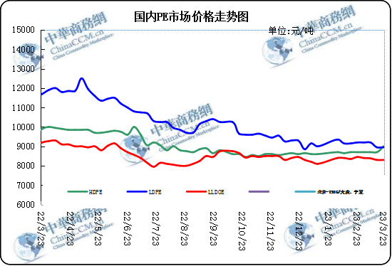 本周國內市場平穩運行,本周原料原油價格小幅回暖,但原油價格并未恢復周前水平,乙烯價格小幅下跌,上游原料市場對聚乙烯支撐乏力。市場價格走勢偏弱,下游工廠逢低采購,成交尚可庫存小幅消化,期貨收盤根據原油情況變化,臨近周末小幅震蕩,指引市場價格不同程度調整,貿易商心態一般,出貨情況正常,下游開工穩定,市場需求一般。目前市場利空因素較多,加上市場需求一般,市場價格無較大波動,市場行情弱勢運行,待上游進一步指引。