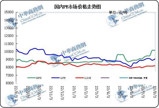 后市預預測:本周國內市場行情向好,市場成交情況有所改善,價格連續上漲,成本端支撐強勁,市場庫存開始去倉,倉單庫存暫穩,期貨收盤上漲為主,市場需求逐漸恢復正常水平,業者心態看漲增加。原料面,沙特主動減產對原油帶來的底部支撐仍存,雖然美國原油庫存降幅不及預期,未來市場需多關注高利率下美國的經濟走向,預計下周國際原油價格將維持高位震蕩。供需面,本周聚乙烯短期檢修增加,市場庫存繼續減少,市場需求緩慢恢復,下游目前維持剛需采購。綜合來看,目前原料方面提供強勁支撐,市場價格得到推漲,但市場需求跟進不足,雖然市場庫存繼續減少,但下游需求并未達到預期,預計下周市場價格高位震蕩。