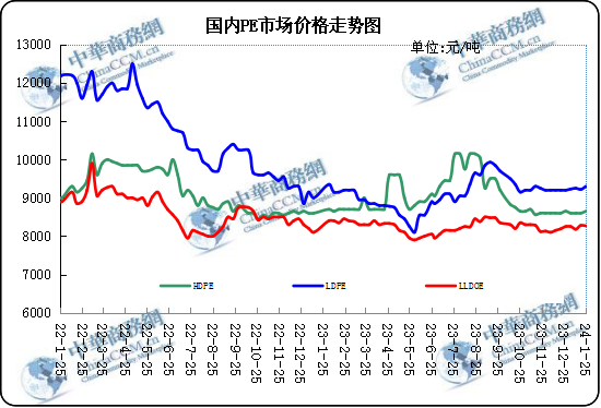 本周國內(nèi)聚乙烯市場價格上行走勢,市場活躍度表現(xiàn)尚可。周前期在原料端支撐下,主力期貨多次高開震蕩走高,強(qiáng)力提振業(yè)者心態(tài),帶動聚乙烯現(xiàn)貨價格上漲,刺激下游春節(jié)前備貨操作;周后期雖期貨走勢繼續(xù)飄紅,但隨著終端企業(yè)逐漸停工,下游陸續(xù)備貨完成,市場內(nèi)成交活躍度下降,限制聚乙烯價格上漲空間。現(xiàn)階段聚乙烯生產(chǎn)廠家繼續(xù)按計(jì)劃檢修生產(chǎn)線,本周裝置檢修數(shù)量較上周稍有減少,隨著檢修裝置陸續(xù)復(fù)工,聚乙烯市場內(nèi)供應(yīng)能力不斷提升,然市場剛需表現(xiàn)仍在緩慢衰退。本周大型生產(chǎn)商的聚乙烯報(bào)價跌多漲少,調(diào)整幅度不等,較前期變化幅度基本持平。綜上所述,本周聚乙烯市場價格在多方因素影響下不斷上行。