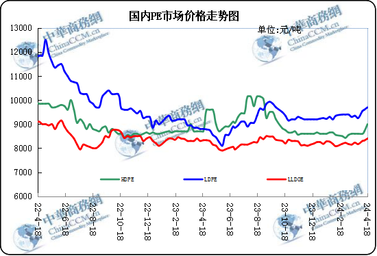 本周國內聚乙烯市場價格震蕩有漲,市場內成交氛圍較活躍。截本周市場需求對價格支撐力逐漸減弱,本周聚乙烯價格受原料價格影響亦較大:其中本周地緣局勢及美聯儲降息預期擾動,國際油價先漲后跌,WTI較上次發稿日下跌;國內乙烯市場價格走勢弱勢運行,市場均價較上次發稿日下跌。現階段農膜地膜需求量逐步減弱,下游開工表現不及前期,采購多以剛需為主。周內期貨走勢飄紅居多,從而帶動市場內價格抬高,然剛需削減之下,下游自身訂單有限,面對價格高位采購心態較為謹慎,現階段貿易商因成本壓力挺價心態較強,然實單成交仍多在低價位。現階段聚乙烯生產廠家繼續按計劃檢修生產線,本周裝置檢修數量較上周稍有減少,聚乙烯市場內供大于需狀態被緩解。本周大型生產商的聚乙烯報價漲跌互現,調整幅度大多不等,較前期波動幅度稍有增加。綜上所述,本周聚乙烯市場價格在多方因素影響下整體小漲。
