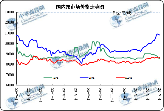 本周國內聚乙烯市場價格漲后回落,市場內成交氛圍稍顯一般。本周市場需求表現一般,本周聚乙烯價格受原料價格影響較大:其中本周地緣局勢和供需利好,國際原油價格震蕩上行。本周期貨受原料強力影響,周內多震蕩飄紅為主。周前期業者面對價格不斷上行多謹慎觀望小量拿貨,實單成交多商談;周后期,期貨走勢偏弱,貿易商多有挺價心態,但下游采購積極性降低。現階段聚乙烯大部分生產廠家繼續按計劃檢修生產線,其中本周萬華、寶豐、燕山各有一條線進入短期檢修。本周新增裝置檢修數量較上周減少。本周大型生產商的聚乙烯報價上行居多,調整幅度大多不等,較前期波動幅度縮減。綜上所述,本周聚乙烯市場價格在多方因素影響下震蕩有漲。