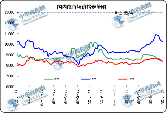 本周國內聚乙烯市場價格弱勢整理,市場內成交氛圍仍較一般。本周市場需求表現未見好轉,本周聚乙烯價格受原料價格影響較大,其中本周利空消息籠罩而原油去庫支撐,國際油價先跌后漲;本周國內乙烯市場價格穩中上行。本周期貨受需求不振影響,周內先弱后強。周前期業者面對市場低價不斷刷新心態多謹慎,試探階段性拿貨,然整體放量有限,實際成交商談為主;周中期,下游適當補貨,成交仍低價位為主,貿易商漲價受阻,為促成交適當讓利。現階段聚乙烯大部分生產廠家繼續按計劃檢修生產線,其中本周有三條生產線進入短期檢修。本周新增裝置檢修數量較上周減少。本周大型生產商的聚乙烯報價下行居多,較前期波動幅度縮減。綜上所述,本周聚乙烯市場價格在多方因素影響下小幅下跌。