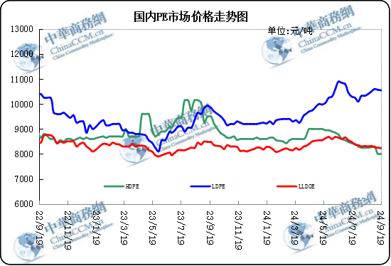 本周國內(nèi)聚乙烯市場價(jià)格先跌后漲,市場內(nèi)成交氛圍持續(xù)提升。本周市場需求熱度緩慢回升,聚乙烯價(jià)格受原料價(jià)格影響仍較大,其中本周美國墨西哥灣颶風(fēng)擾動(dòng),國際油價(jià)震蕩上漲;本周乙烯市場價(jià)格承壓下行。本周受期貨影響較大,節(jié)前期貨跌多漲少,節(jié)后期貨先弱后強(qiáng),但整體對(duì)業(yè)者心態(tài)提振有限,F(xiàn)階段聚乙烯市場內(nèi)剛需表現(xiàn)仍在緩慢轉(zhuǎn)好,雖體量遠(yuǎn)不及去年,但下游視訂單情況小量補(bǔ)庫,貿(mào)易商適量讓利積極出貨,市場內(nèi)低價(jià)位成交順暢。現(xiàn)階段聚乙烯大部分生產(chǎn)廠家繼續(xù)按計(jì)劃檢修生產(chǎn)線,其中本周有六條生產(chǎn)線進(jìn)入檢修,其中突發(fā)檢修裝置較多,裝置檢修數(shù)量較上周增加。兩油庫存水平在81萬噸,較比上周同期上漲,本周大型生產(chǎn)商的聚乙烯報(bào)價(jià)漲多跌少,較比前期波動(dòng)幅度基本持平。綜上所述,本周聚乙烯市場在多方因素影響下震蕩走強(qiáng)。