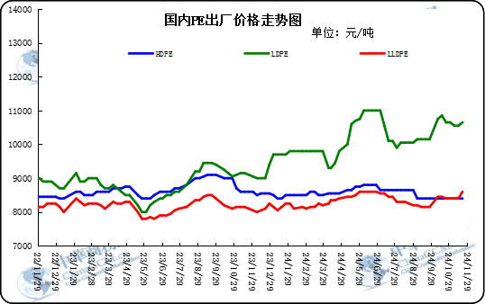 后市預測:本月聚乙烯市場價格受上游原料和國內需求影響,主流期貨盤面震蕩飄紅為主,市場價格漲多跌少,成交價格重心仍偏低位。原料面,市場逐漸淡化中東局勢而重新關注俄烏沖突,俄烏互相發射導彈導致俄烏沖突進一步升級,特朗普勝選總統后,美元指數可能偏強運行,且當前美聯儲降息步伐可能放緩,三大機構月報對原油市場持偏消極態度。前期乙烯供應緊缺狀態在山東魯西意外停車后越發明顯,但十二月份部分前期檢修裝置存重啟計劃,加之部分企業存投產計劃,乙烯供應存增加預期。成本面對聚乙烯市場支撐有限。綜合來看,下月歐佩克+可能推遲增產計劃,加之俄羅斯及伊拉克等進行補償性減產為市場提供支撐,但非歐佩克國家增產及原油累庫不利市場,未來供需失衡擔憂持續施壓市場,若下月地緣局勢及減產無明顯利好,國際油價將延續震蕩偏弱行情。需求端受利潤限制,對高價貨源存抵觸情緒,美金市場受韓國裝置降負荷影響報盤減少,對國內市場指引有限,預計下月國內乙烯市場價格先揚后抑。