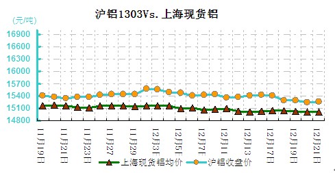 本周LME庫存上升,截止12月21日增加67400噸至5241525噸。滬鋁1303合約周均價環比下跌0.56%,上海現貨鋁周均價環比下跌0.1%,上海期貨交易所鋁庫存減少2313至447832噸。