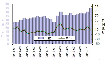 2012年12月中國氧化鋁產量趨勢圖