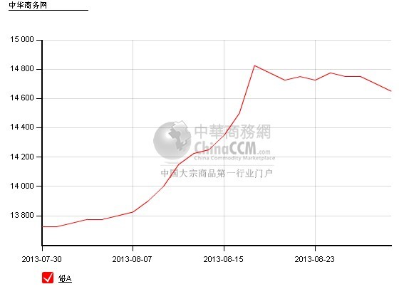 本周鉛錠價格變化區間在14775-14700元/噸,鉛錠表現依然下行為主,請參考8月份上海地區鉛錠現貨走勢:
