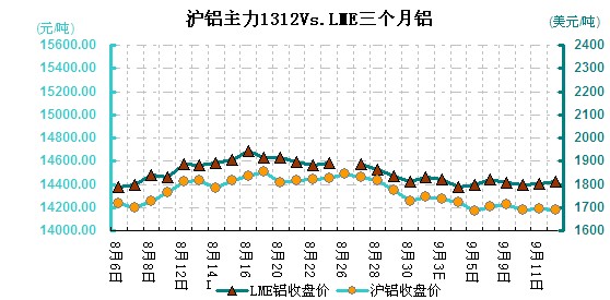 本周(9.9-9.12)在美聯儲下周貨幣政策會議前投資人表現謹慎,鋁價窄幅波動。從周均價看,LME倫鋁環比下跌0.45%,滬鋁主力合約環比下跌0.3%,上海現貨鋁價環比上漲0.32%。