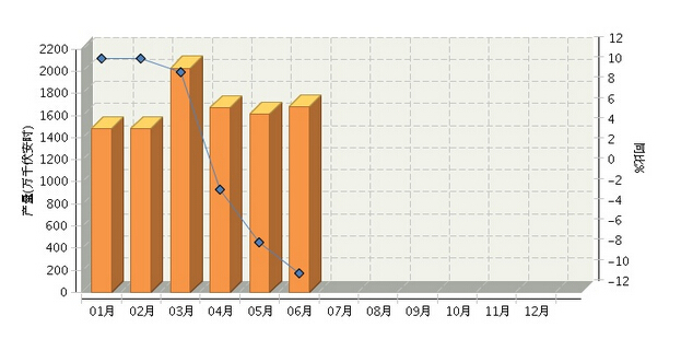 根據(jù)國家統(tǒng)計局公布數(shù)據(jù),2016年1~6月全國鉛酸蓄電池行業(yè)累計完成產量同比增長2.45%。其中:6月份完成產量同比增長-10.09%。2016年全國鉛酸蓄電池行業(yè)月度產量及同比如下圖所示。