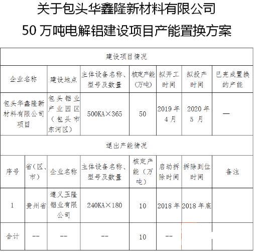 按照《國務院辦公廳關于營造良好市場環境促進有色金屬工業調結構促轉型增效益的指導意見》和《工業和信息化部關于電解鋁企業通過兼并重組等方式實施產能置換有關事項的通知》的相關要求,現對遵義玉隆鋁業有限公司產能轉移聲明書和遵義玉隆鋁業有限公司電解鋁產能置換方案予以公示,歡迎社會公眾進行監督。公示期為自本公示發布之日起10個工作日。