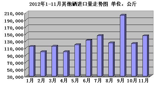2012年1-11月其他硒進(jìn)口量走勢圖