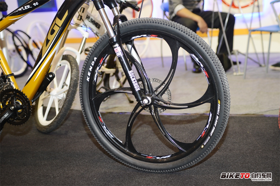 黑色六刀一體輪,搭配粗壯的Rock Shox,很有肌肉感