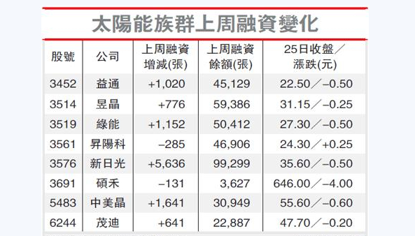 新日光、昱晶、茂迪、益通、升陽科等電池廠受此次美方課征重稅影響最大,上周一度傳出業者遭課稅率偏低,市場出現押寶行情,根據統計,上周融資除碩禾和升陽科逆勢減少外,其余個股融資都增加,以新日光大增5,636張最高,此次利空超乎市場預期,今天恐出現失望性賣壓。