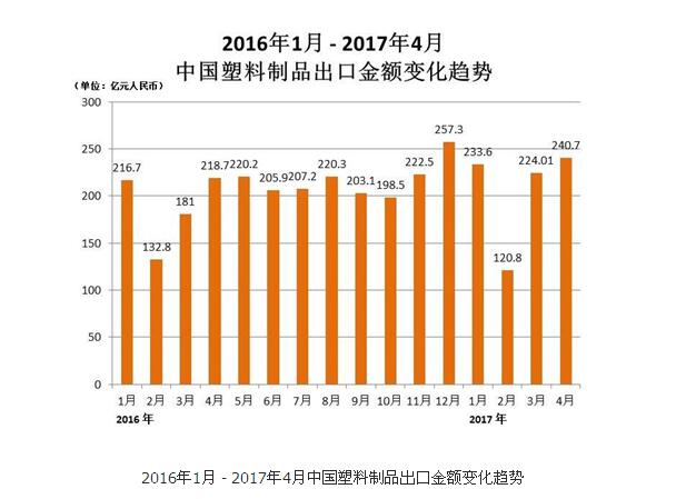 4月出口塑料制品240.7億元 同比增10.04%