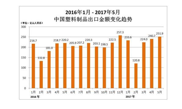 5月出口塑料制品出口251.9億元 同比增14.4%