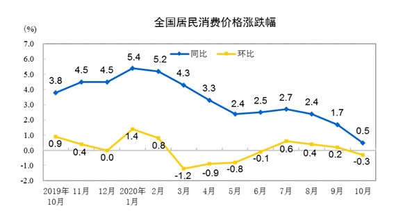 統計局解讀:2020年10月份CPI同比漲幅繼續回落 PPI同比降幅與上月相同