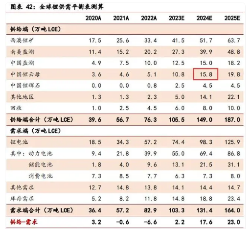 InfoLink預(yù)測,2024年全球碳酸鋰總產(chǎn)出預(yù)計(jì)將達(dá)到132.3萬噸,2024年總需求達(dá)118.9萬噸,將有超過10%的剩余,碳酸鋰價格將持續(xù)承壓。