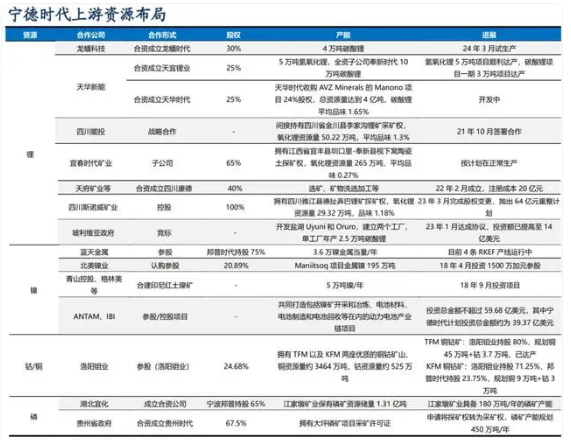 “為進(jìn)一步保障電池生產(chǎn)所需的上游關(guān)鍵資源及材料供應(yīng),公司通過自建、參股、合資等多種方式參與鋰、鎳、鈷、磷等電池礦產(chǎn)資源及相關(guān)產(chǎn)品的投資、建設(shè)及運(yùn)營。”
