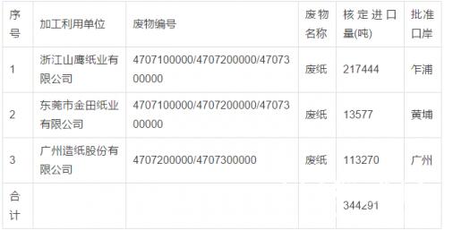 其中東莞市金田紙業有限公司和廣州造紙股份有限公司,核定進口量分別為1.36萬噸和11.3萬噸;