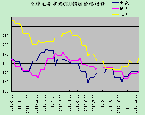 (關(guān)鍵字:CRU 國(guó)際鋼鐵價(jià)格指數(shù) 歐洲 北美 亞洲)