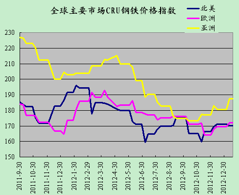 (關鍵字:CRU 國際鋼鐵價格指數 歐洲 北美 亞洲)