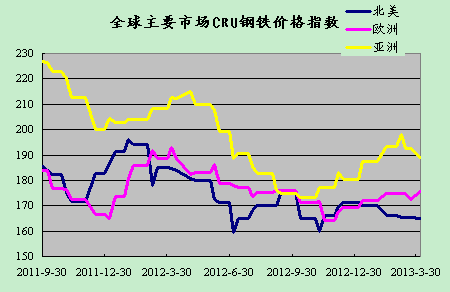(關鍵字:CRU 國際鋼鐵價格指數 歐洲 北美 亞洲)