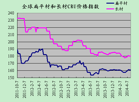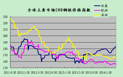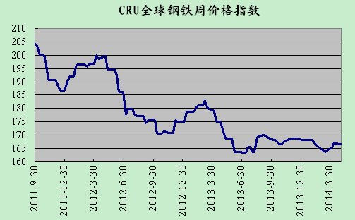 上周國際鋼市整體走低。CRU國際鋼價綜合指數為166.64,CRU扁平材指數為160.84,CRU長材指數為180.13。北美市場CRU價格指數為183.46,歐洲市場CRU價格指數為155.21,亞洲市場CRU價格指數為166.04。