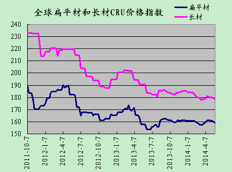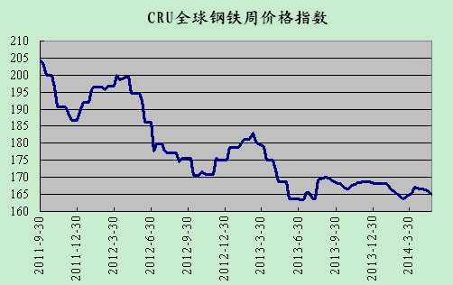 上周國(guó)際鋼市全面走低。CRU國(guó)際鋼價(jià)綜合指數(shù)為165.11,CRU扁平材指數(shù)為159.23,CRU長(zhǎng)材指數(shù)為178.67。北美市場(chǎng)CRU價(jià)格指數(shù)為183.12,歐洲市場(chǎng)CRU價(jià)格指數(shù)為155.38,亞洲市場(chǎng)CRU價(jià)格指數(shù)為162.97。