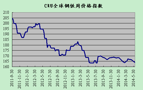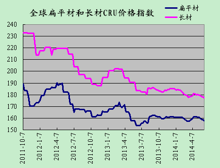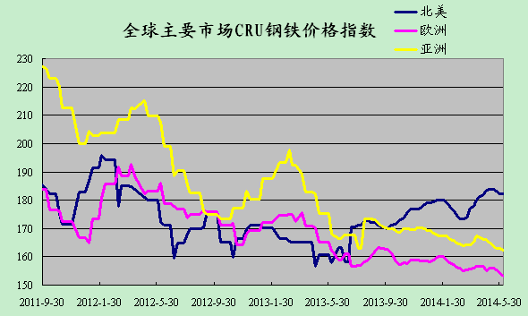 上周國際鋼市繼續全面走低。CRU國際鋼價綜合指數為163.96,CRU扁平材指數為158.03,CRU長材指數為177.56。北美市場CRU價格指數為182.14,歐洲市場CRU價格指數為153.02,亞洲市場CRU價格指數為162.44。