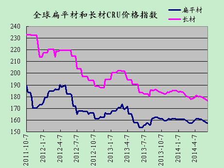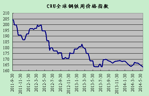 上周國際鋼市繼續(xù)全面走低。CRU國際鋼價綜合指數(shù)為163.28,CRU扁平材指數(shù)為157.63,CRU長材指數(shù)為176.46。北美市場CRU價格指數(shù)為180.89,歐洲市場CRU價格指數(shù)為152.49,亞洲市場CRU價格指數(shù)為161.86。