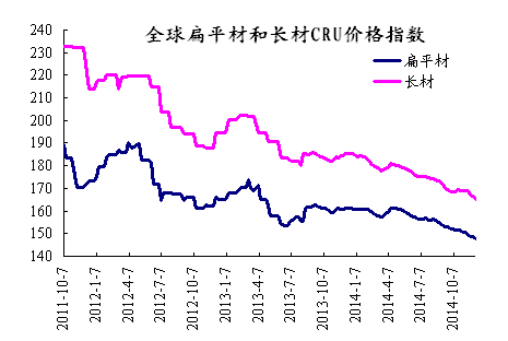上周國際鋼市持續整體下滑,CRU國際鋼價綜合指數為151.76,CRU扁平材指數為146.51,CRU長材指數為164.02,北美市場CRU價格指數為169.97,歐洲市場CRU價格指數為146.2,亞洲市場CRU價格指數為146.63。