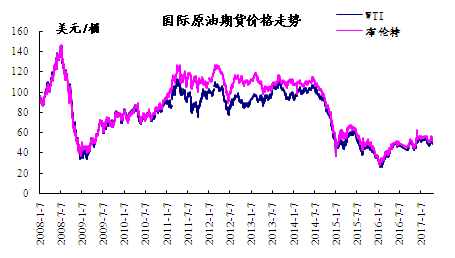 4月25日周二紐約商業交易所6月份交割的西德克薩斯輕質原油(WTI)期貨價格上漲33美分,報收于每桶49.56美元,漲幅為0.7%。倫敦ICE歐洲期貨交易所6月份交割的北海布倫特原油期貨價格也上漲50美分,報收于每桶52.10美元,漲幅為1%。