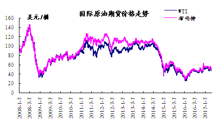 5月10日周三紐約商業(yè)交易所6月份交割的西德克薩斯輕質(zhì)原油(WTI)期貨價格上漲1.45美元,報收于每桶47.33美元,漲幅為3.2%。倫敦ICE歐洲期貨交易所6月份交割的北海布倫特原油期貨價格也上漲1.49美元,報收于每桶50.22美元,漲幅為3.1%。