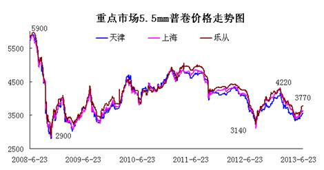 至于把市場鋼價回落,行業(yè)微利,甚至虧損簡單的歸結于產(chǎn)能過剩也是不對的。為什么2008年上半年以前和2009年至2011年中期鋼材價格在漲跌震蕩中,總體是不斷攀升呢?為什么2011年中期以后鋼材價格總體是回落的大趨勢呢?這顯然同國際金融危機中通脹上升和通脹泡沫破滅的周期性有明顯的疊加效應。更何況中國經(jīng)濟在這個時期一直延續(xù)著增幅回落的走勢,必然要影響市場的需求。這也是影響鋼材市場價格走勢的重要影響因素。
