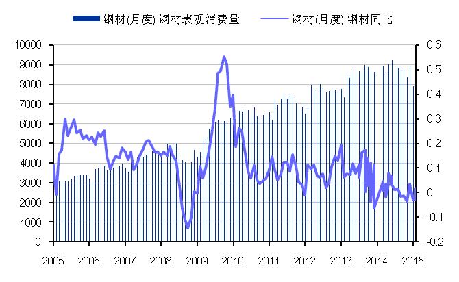 1、2014年我國鋼鐵消費已經出現小幅回落趨勢,今年還會延續這種趨勢。